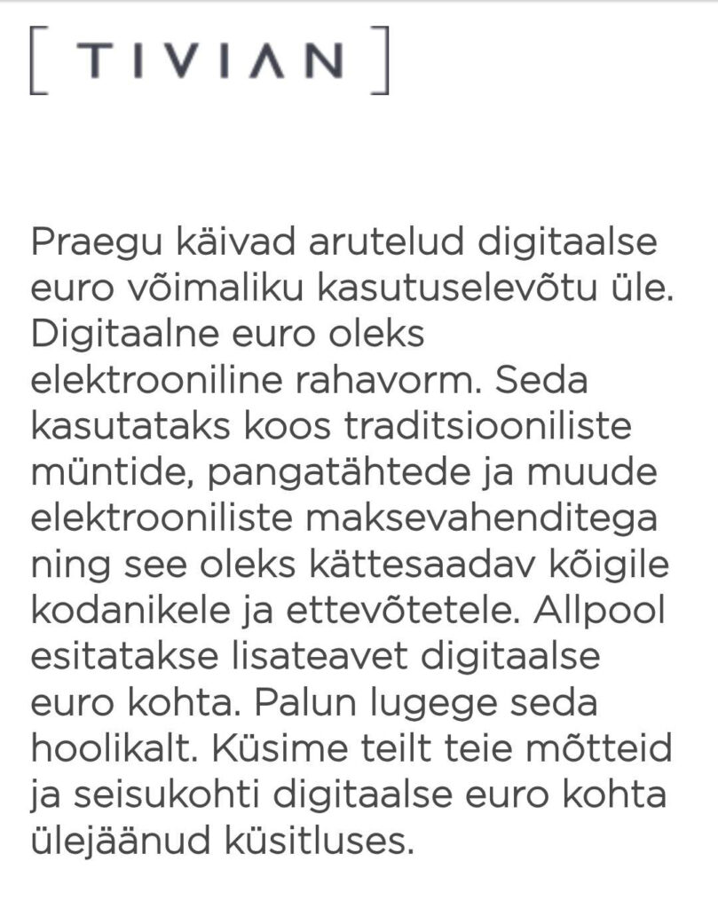 Kui tõesti on Tivian see, kes digieuro kuvandiuuringu läbi viib, tekib rida küsimusi. Miks on Euroopa Keskpank või tema partnerid valinud kampaaniat testima ettevõtte, kelle põhitegevus on töötajate rahulolu ja kliendikogemuse mõõtmine? Kas tegemist on juhusliku alltöövõtjaga või teadliku valikuga kasutada eraettevõtet, kelle kaudu saab ideoloogilist eeltööd läbi viia ilma, et see paistaks avaliku propagandana?